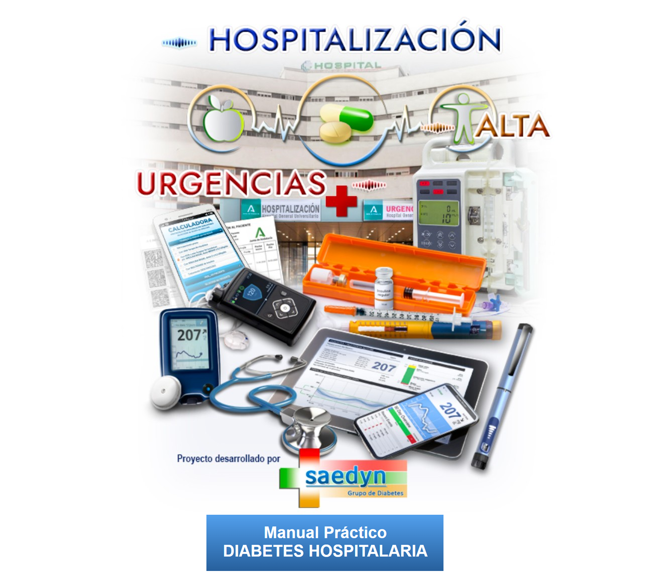 Desde este enlace, o bien pulsando en la imagen, podéis acceder a la nueva edición del Manual Práctico de Diabetes Hospitalaria, que ha sido realizado por el Grupo de Diabetes de la SAEDYN. También podeis acceder desde la página de inicio de la Web. o bien desde el menú, en la sección de Formación, y también hemos puesto un enlace directo en la parte lateral derecha en cada página de la Web. El responsable de la edición de esta nueva edición del Manual Práctico de Diabetes Hospitalaria ha sido el Dr. Rafael Palomares Ortega, Coordinador del Grupo de Diabetes de la SAEDYN.
